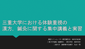 ![]() | 三重大学における腹診シミュレータ利用の紹介 三重大学病院漢方外来 高村 光幸 説明者:ナレータ― |