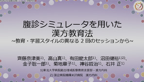 ![]() | 腹診シミュレータを用いた漢方教育法 ― 教育・学習スタイルの異なる2回のセッションから― 東北大学病院総合地域医療教育支援部・漢方内科 高山 真 説明者:ナレータ― |