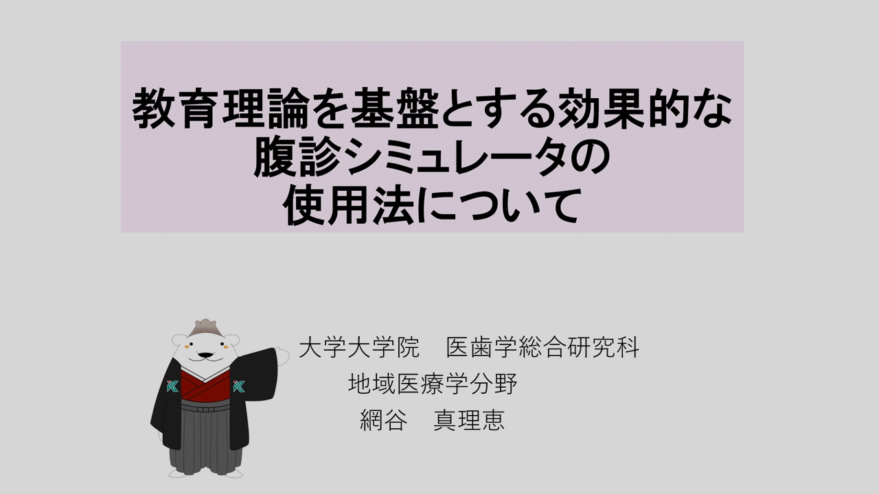 ![]() | 教育理論を基盤とする効果的な腹診シミュレータの使用法について 鹿児島大学地域医療学分野 網谷 真理恵 |